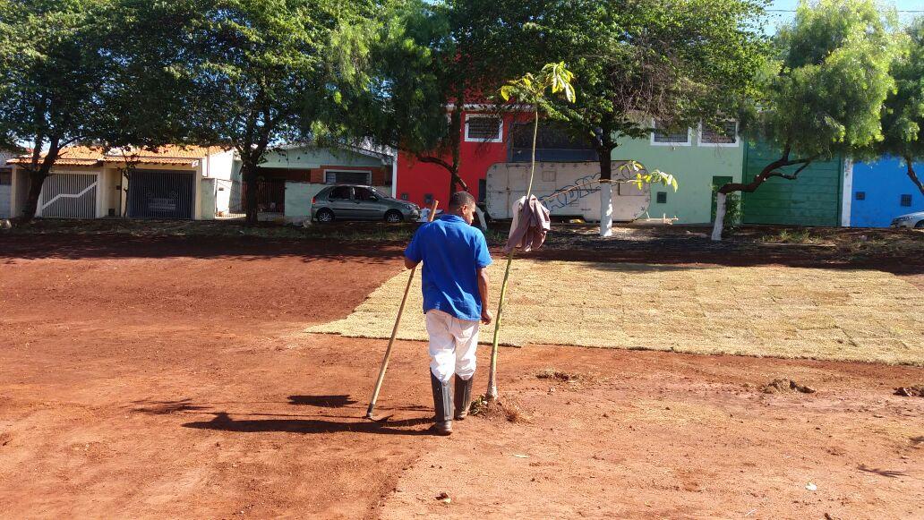 A Secretaria Municipal do Meio Ambiente iniciou nesta terça-feira, 24, o plantio de grama em uma área pública no Jardim Zara que será totalmente revitalizada pela Prefeitura de Ribeirão Preto.