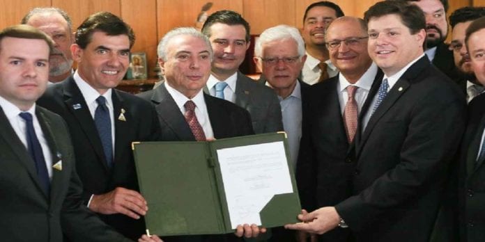 O governador Geraldo Alckmin participou, nesta quinta-feira, 24, em Brasília, de cerimônia de assinatura do Termo de Compromisso entre o Governo Federal, por meio do Ministério dos Transportes, Portos e Aviação Civil, e o Governo do Estado, por meio do DAESP – Departamento Aeroviário do Estado de São Paulo, para investimentos de R$ 88 milhões no Aeroporto Estadual Dr. Leite Lopes, em Ribeirão Preto. O ministro dos Transportes, Portos e Aviação Civil, Maurício Quintella Lessa, o secretário estadual de Logística e Transportes, Laurence Casagrande Lourenço, o superintendente do DAESP, Fábio Calloni, e o prefeito de Ribeirão Preto, Antônio Duarte Nogueira, também participaram do evento.