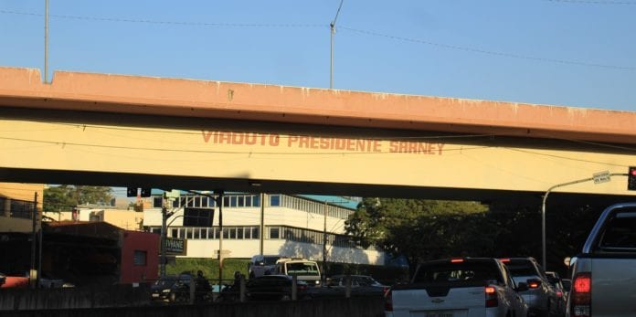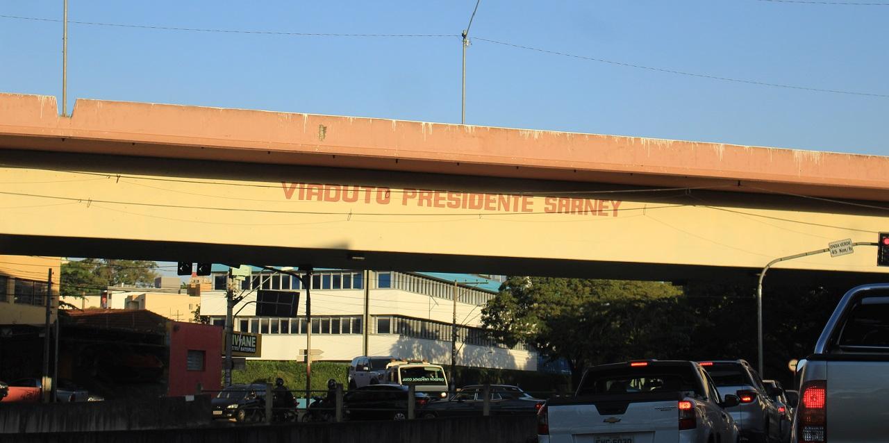 Enquanto isso o viaduto que não se chama mais José Sarnei, e sim de Jandyra de Camargo Moquenco, mas continua com nome do Sarnei.