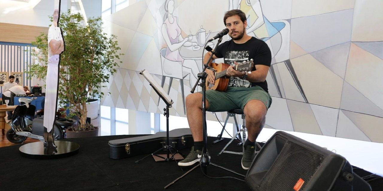 No mês de fevereiro, dias 7, 14, 21 e 28, o músico Caio Junqueira é a atração durante o happy hour às quintas-feiras. A apresentação no estilo voz e violão reúne um repertório variado, entre MPB, bossa nova e pop rock. Natural de Ribeirão Preto, Caio, desde criança, demonstrou interesse pela música e aos 14 anos começou com as aulas de violão para conhecer esse universo mais de perto.