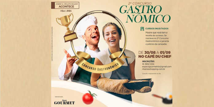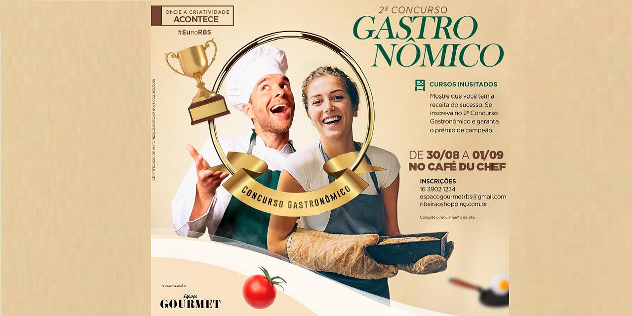 O Espaço Gourmet do RibeirãoShopping recebe, de 29 de julho a 18 de agosto, as inscrições para o II Concurso Gastronômico de Ribeirão Preto. A competição é voltada para estudantes de cursos de Gastronomia, incluindo formandos desde 2016, e amantes da boa cozinha, sendo obrigatória a participação de duas pessoas por equipe.