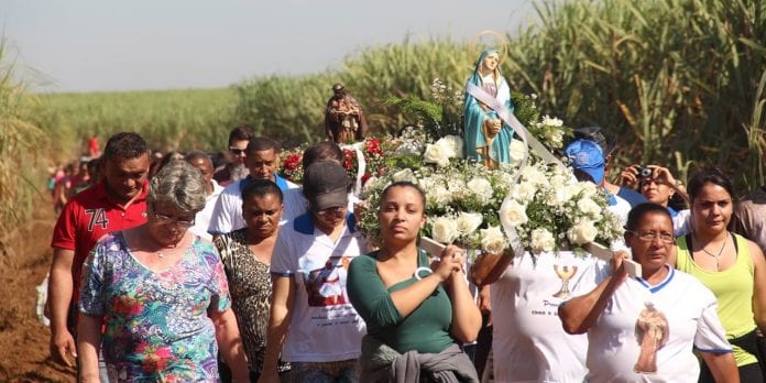 Após quase quatro horas de caminhada, bem próximo ao local onde seria celebrada missa em louvor ao santo negro, a emoção toma conta dos devotos. Trazida pela família da “Colônia Preta”, a imagem de Nossa Senhora das Graças surge no meio do canavial e vem ao encontro de São Benedito, como a mãe que recebe o filho na entrada de casa.