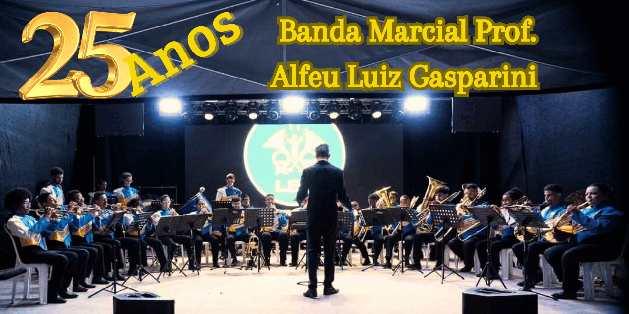 A Banda Marcial Prof. Alfeu Luiz Gasparini está em festa! Celebrando 25 anos de história, a banda realizará um concerto especial que promete emocionar a todos com um repertório empolgante e nostálgico. Este evento inesquecível acontecerá no dia 8 de junho, às 20h, no Teatro MINAZ.