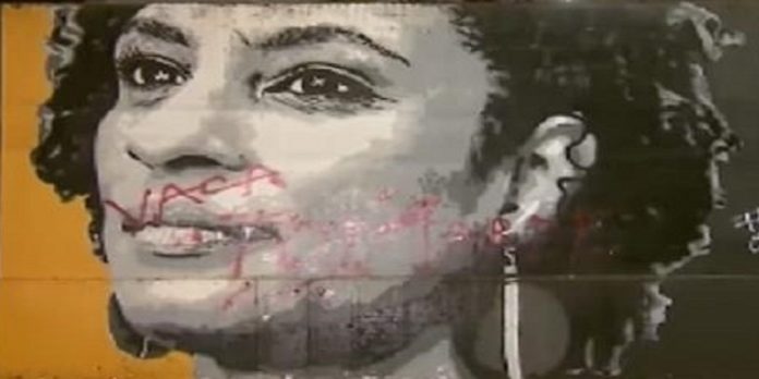 Um mural em Ribeirão Preto com o retrato de Marielle Franco, vereadora assassinada em março de 2018, no Rio de Janeiro, foi pichado com insultos, em Ribeirão Preto.