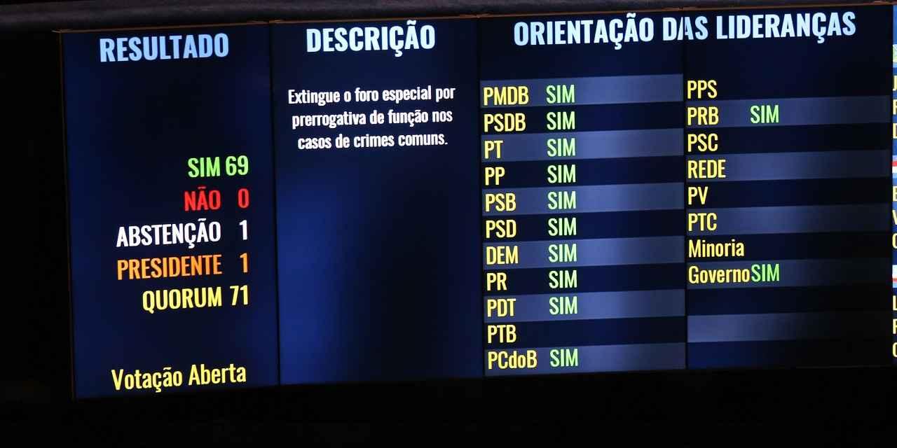 Com a aprovação da proposta, cerca de 54 mil autoridades do país poderão passar a ser julgadas na primeira instância caso cometam crime inafiançável, sejam condenados por órgão colegiado ou tenham prisão decretada em flagrante delito.