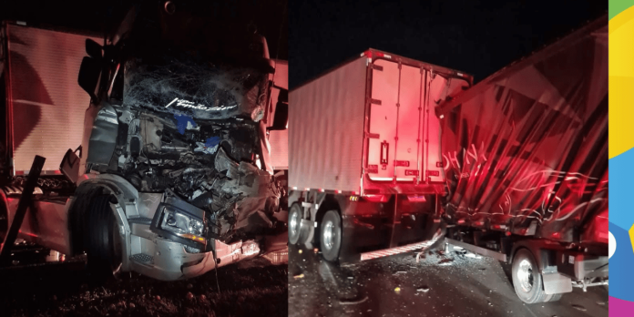 - Um terceiro caminhão, que vinha logo atrás, não conseguiu frear a tempo e bateu violentamente contra os veículos já parados.